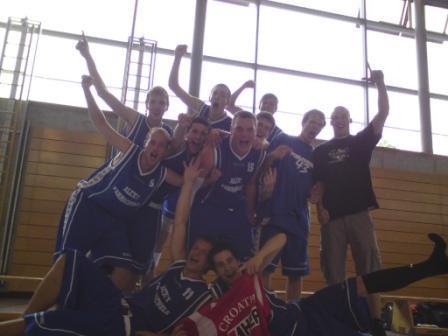 Wolnzach, 17.07.2010. Nach den durchwachsenen letzten Wochen - den Niederlagen gegen den FC Bayern und die französische Auswahl aus Liancourt - sah man diesmal nur freudestrahlende Gesichter in Wolnzach. Mit einem deutlichen 81:43 Sieg über den DJK Landsberg hat sich die Basketballjugend für die Bezirksliga qualifiziert.